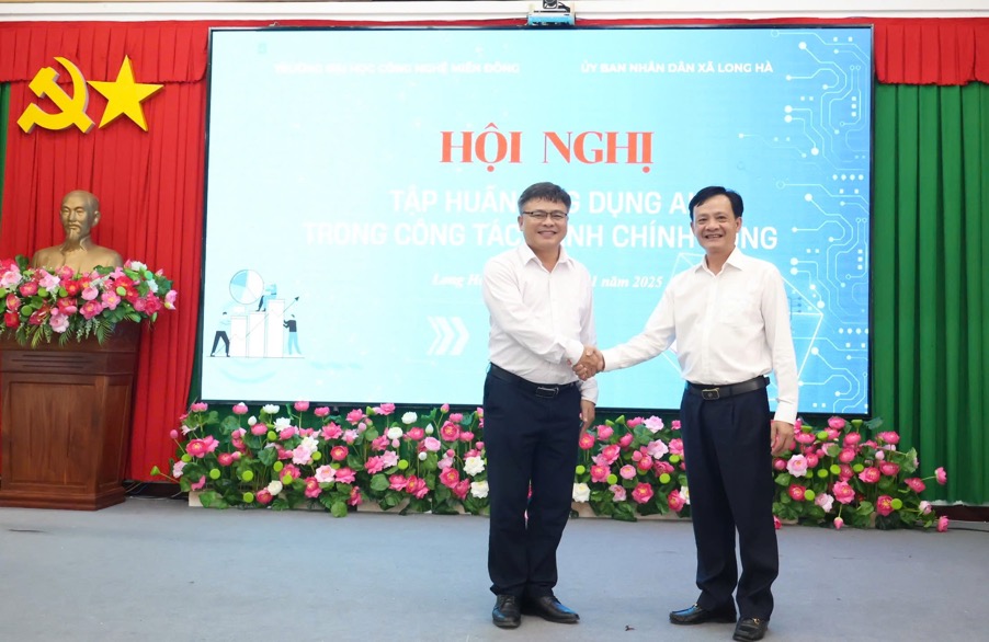 Chiều ngày 05/11/2025 tai UBND xã Long Hà. Rất vinh dự được đón tiếp PGS.TS. Phạm Văn Song – Hiệu trưởng cùng đội ngũ giảng viên Trường Đại học công nghệ Miền Đông về tập huấn ứng dụng trí tuệ nhân tạo (AI) dành cho đội ngũ cán bộ, công chức, viên chức và người lao động trên địa bàn xã.