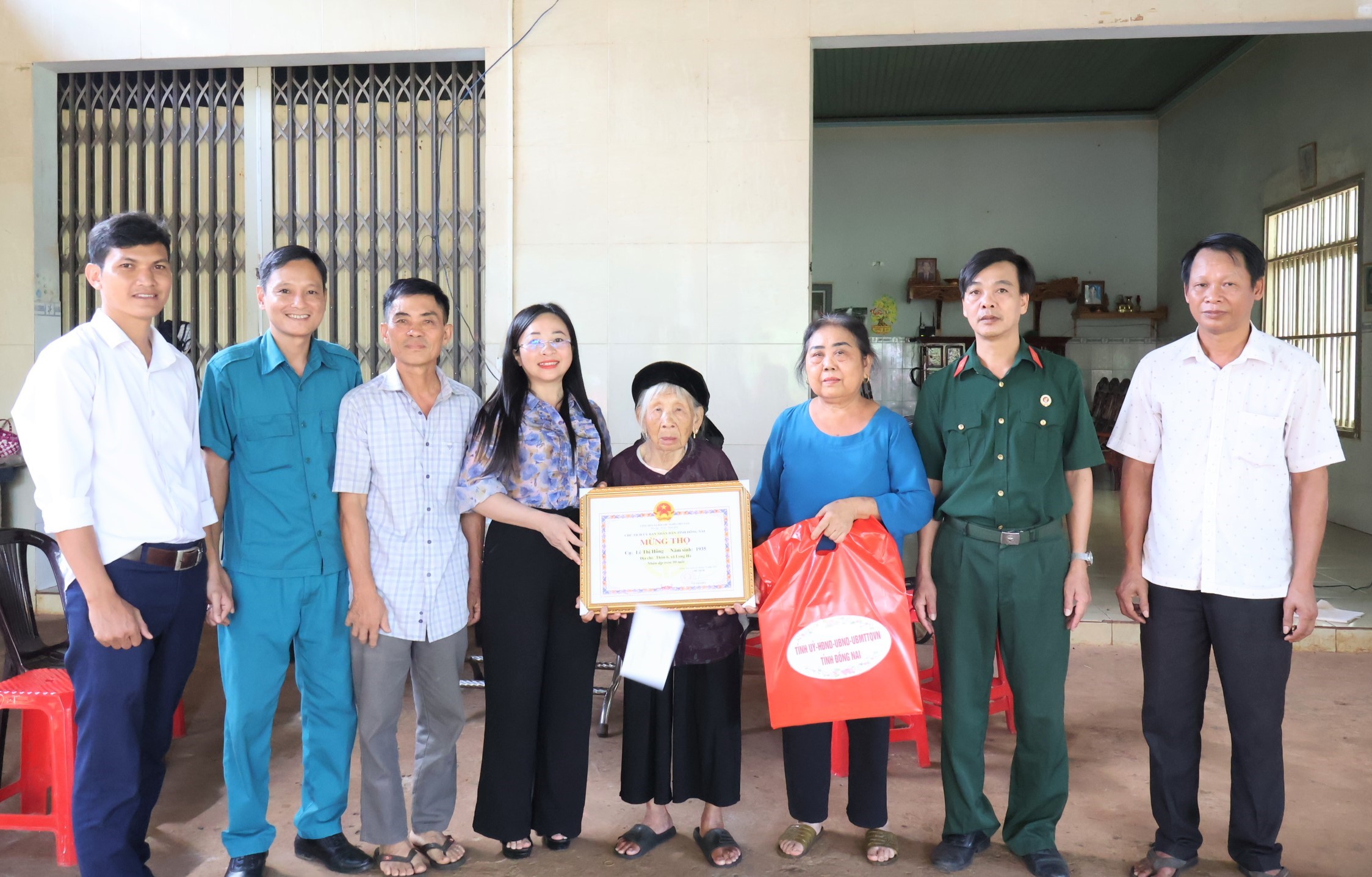 Đến thăm các cụ: Nguyễn Thị Kết, 103 tuổi; Lê Thị Hồng, 90 tuổi, cùng ngụ thôn 6 và cụ Nguyễn Công Ước, 90 tuổi, ngụ thôn 2, thay mặt Đảng ủy, HĐND, UBND, Ủy ban MTTQ Việt Nam xã, UV BTV, Chủ tịch UB MTTQ VN xã Nguyễn Thị Hương chúc mừng và mong các cụ sống thọ, sống vui, sống khỏe, phát huy tinh thần “tuổi cao gương sáng”; tích cực tham gia các phong trào ở địa phương, góp phần xây dựng đời sống văn hóa mới, là tấm gương sáng cho mọi người noi theo. Các đồng chí khẳng định, Người cao tuổi là vốn quý, là hồng phúc của dân tộc, mong rằng, các con cháu trong gia đình dành nhiều thời gian, tình cảm, sự quan tâm đến các cụ; chăm lo, động viên các cụ vui khỏe tuổi già để hưởng phúc cùng con cháu... Được đoàn đến thăm, các cụ cao niên và người thân rất phấn khởi, gửi lời cảm ơn lãnh đạo Đảng, Chính quyền, MTTQ các cấp những năm qua luôn quan tâm đến người cao tuổi, khẳng định đó là nguồn động viên tinh thần lớn để các cụ sống vui, sống khỏe, là cây cao bóng cả, làm chỗ dựa tinh thần cho con cháu.