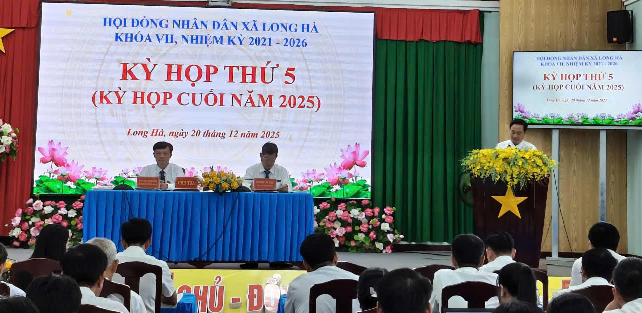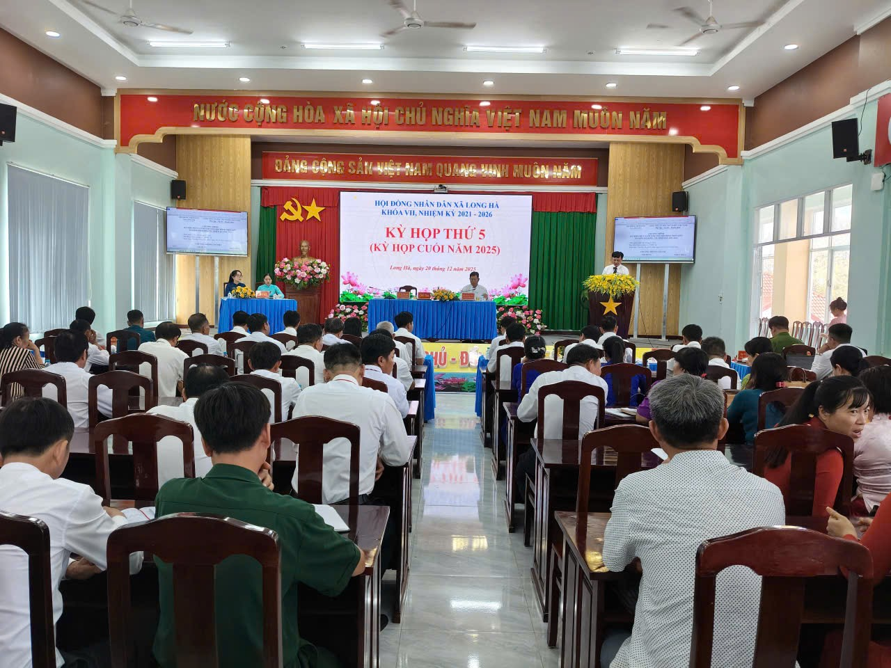 Chiều ngày 20/12/2025, Hội đồng nhân dân xã Long Hà khóa VII, nhiệm kỳ 2021–2026 đã tổ chức Kỳ họp thứ 5 (kỳ họp cuối năm 2025) nhằm đánh giá tình hình thực hiện nhiệm vụ phát triển kinh tế – xã hội, quốc phòng – an ninh năm 2025 và quyết định các nội dung quan trọng thuộc thẩm quyền.