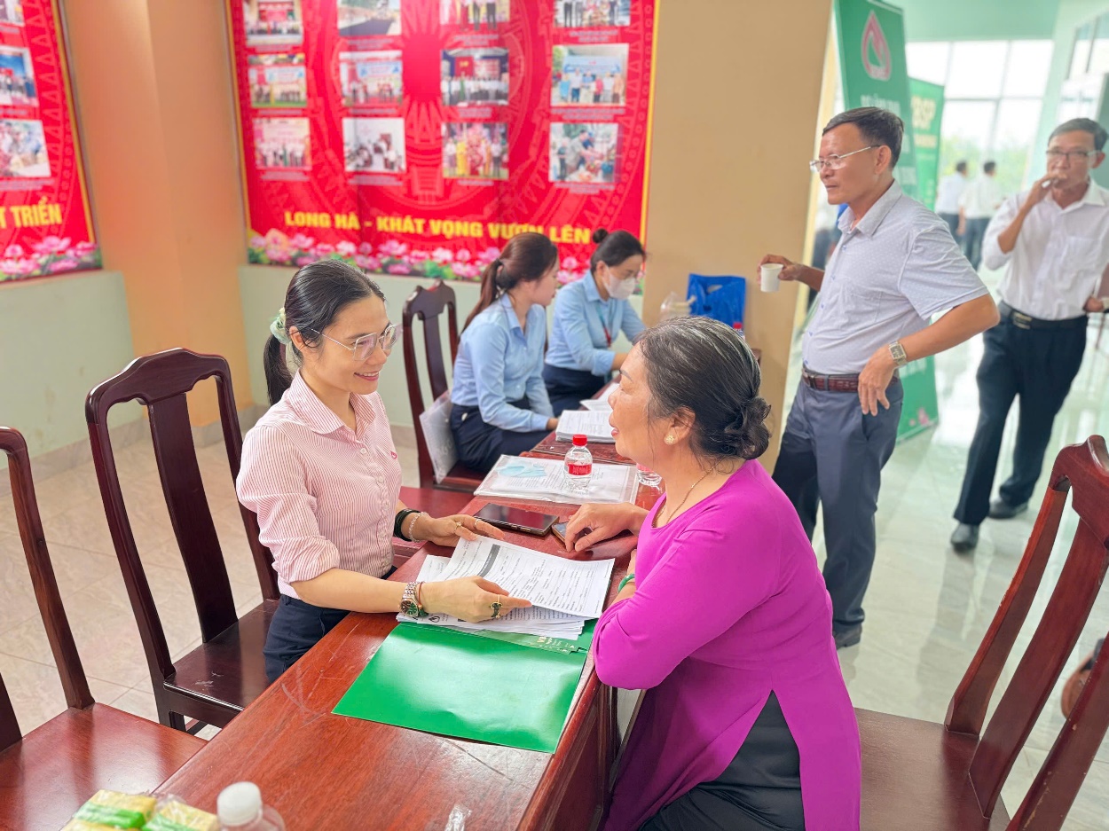 Mới đây, tại Hội nghị điển hình tiên tiến xã Long Hà, Ngân hàng Chính sách Xã hội (NHCSXH) Phú Riềng đã phối hợp với các hội đoàn thể xã hướng dẫn người dân, đoàn viên, hội viên chưa sử dụng app ngân hàng chính sách thực hiện cài app banking và tham gia gửi tiết kiệm