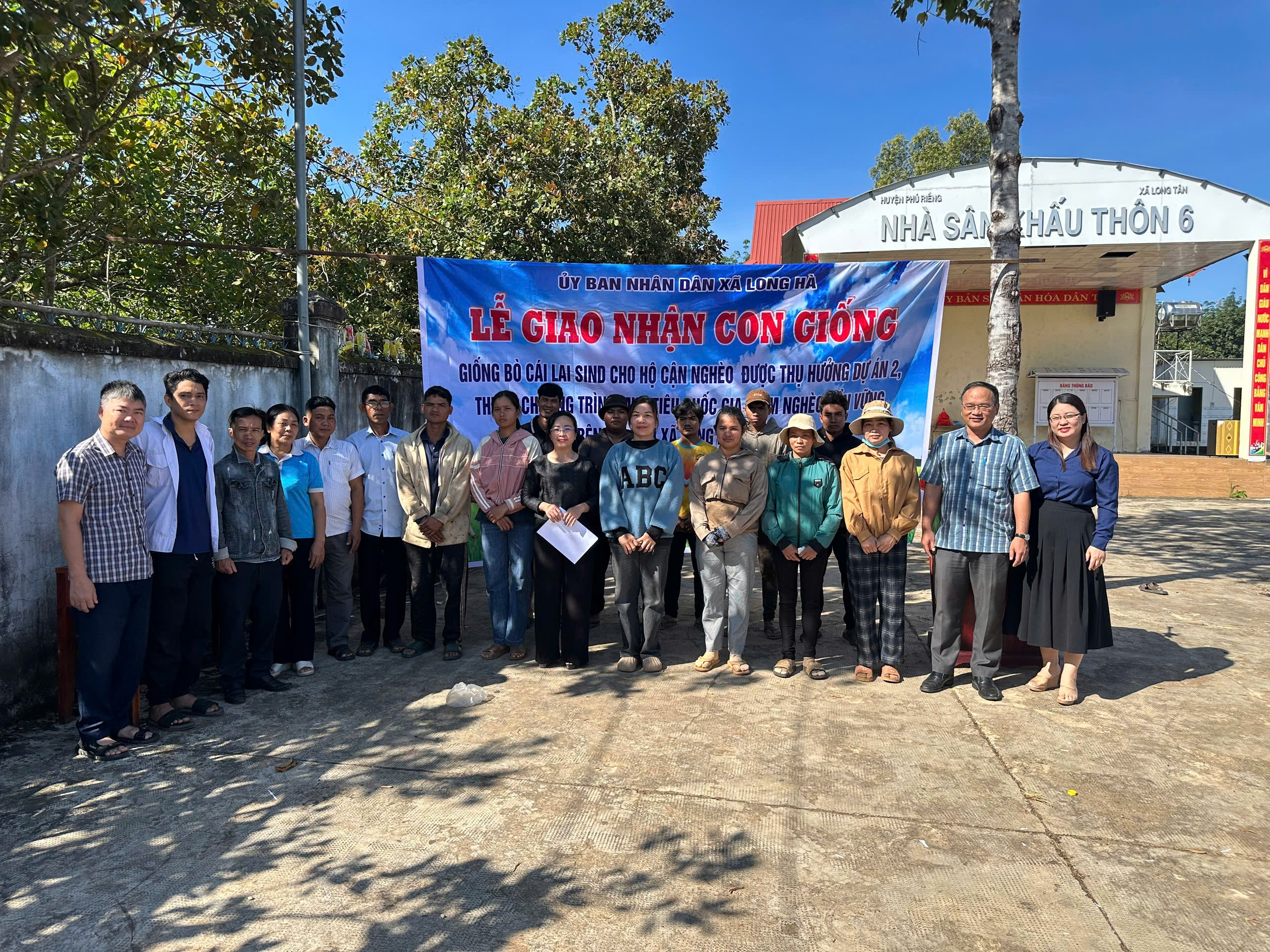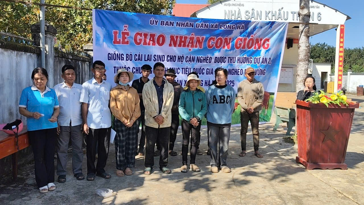 Sáng ngày 31/12, UBND xã Long Hà đã tổ chức trao tặng bò giống sinlaid cho các hộ cận nghèo trên địa bàn thôn Long Tân 6. Đây là hoạt động thuộc Dự án 2 - Chương trình Mục tiêu Quốc gia (MTQG) giảm nghèo bền vững năm 2025.