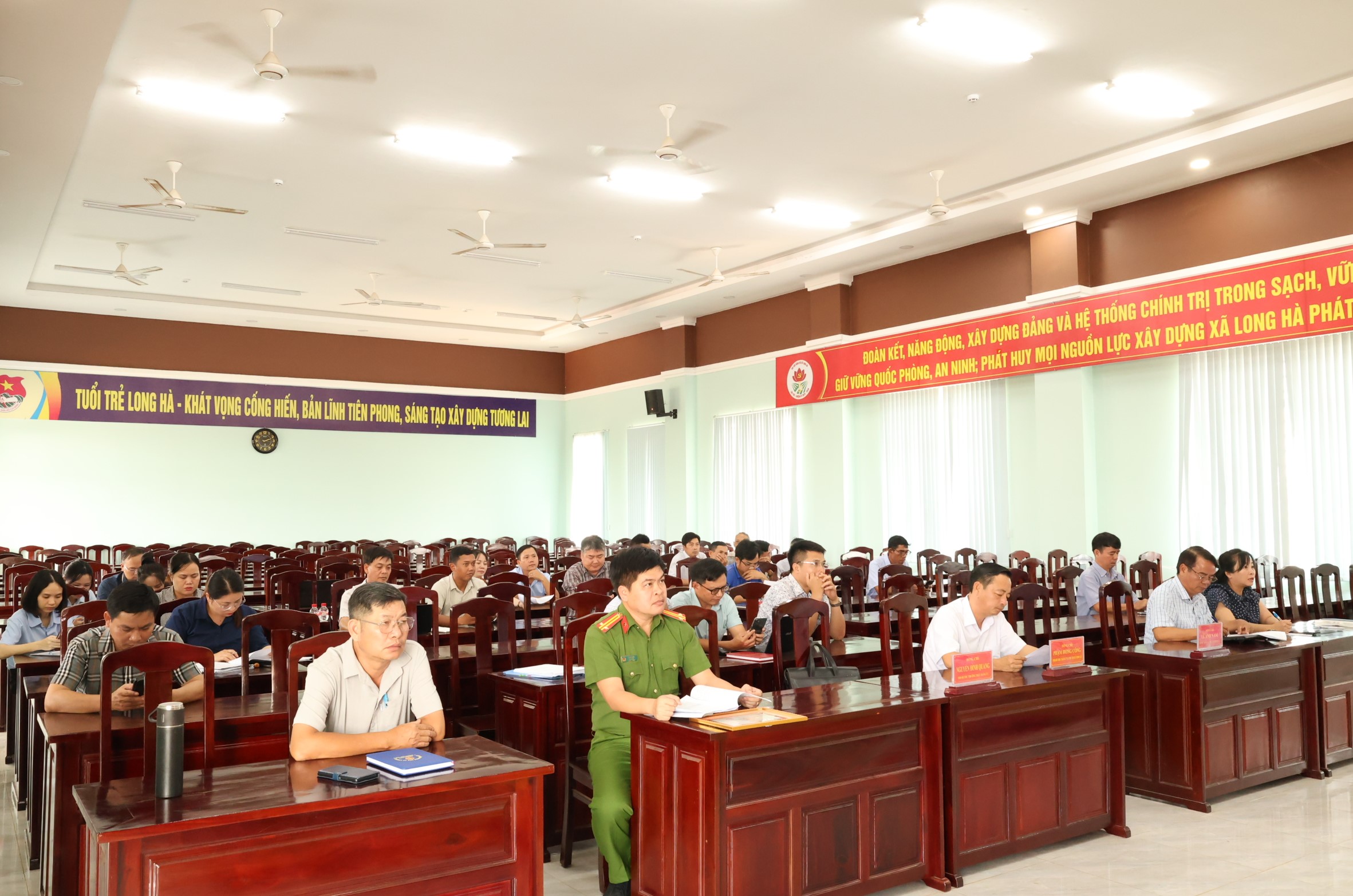 <span style="font-size:14pt"><span style="line-height:115%"><span style="font-family:&#039;Times New Roman&#039;,serif">&nbsp; &nbsp; &nbsp;Tại điểm cầu xã Long Hà, Phó Bí thư, Chủ tịch UBND xã Phạm Hồng Công; UV BTV, Chủ tịch UB MTTQ VN xã Nguyễn Thị Hương; các đồng chí UV BTV, UV BCH, lãnh đạo các phòng, ban, đơn vị, thành viên Hội đồng Bầu cử xã, Ban điều hành các thôn cùng dự.</span></span></span>