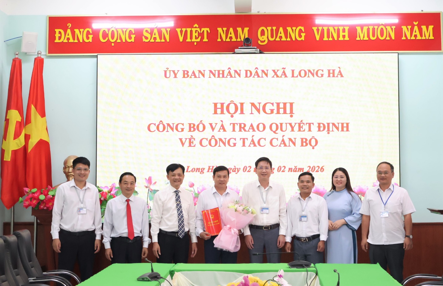 Sáng 02-02, UBND xã Long Hà tổ chức Hội nghị công bố và trao Quyết định về công tác cán bộ. Bí thư Đảng ủy, Chủ tịch HĐND xã Lê Anh Nam; Phó Bí thư, Chủ tịch UBND xã Phạm Hồng Công; các Phó Chủ tịch UBND xã: Bùi Mạnh Cường, Lê Đình Trung, lãnh đạo, chuyên viên các phòng, ban, đơn vị xã, Ban giám hiệu Trường Mẫu giáo Long Tân cùng dự.