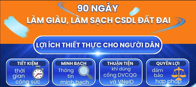 Theo Kế hoạch, chiến dịch sẽ được triển khai đến hết ngày 30/11/2025. Các Tổ công tác tại xã và thôn sẽ trực tiếp hướng dẫn, thu thập và sao chụp các giấy tờ liên quan như: Giấy chứng nhận quyền sử dụng đất, căn cước công dân của chủ sử dụng đất, chủ sở hữu nhà ở có tên trên giấy chứng nhận… Tiến hành rà soát, làm sạch toàn bộ cơ sở dữ liệu đất đai “Đúng - Đủ - Sạch - Sống - Thống Nhất - Dùng Chung”; bảo đảm sự thống nhất, đồng bộ, phù hợp với mô hình tổ chức chính quyền địa phương 2 cấp.