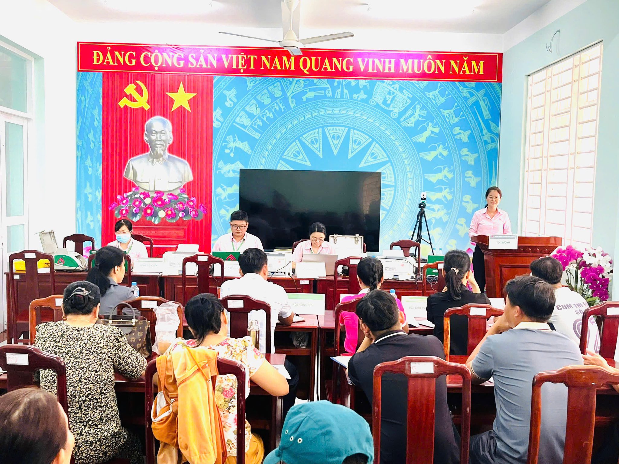 Không khí buổi giao dịch đầu tiên giữa bà con nhân dân tại xã Long Hà và Phòng giao dịch Ngân hàng Chính sách Xã hội Phú Riềng, Đồng Nai